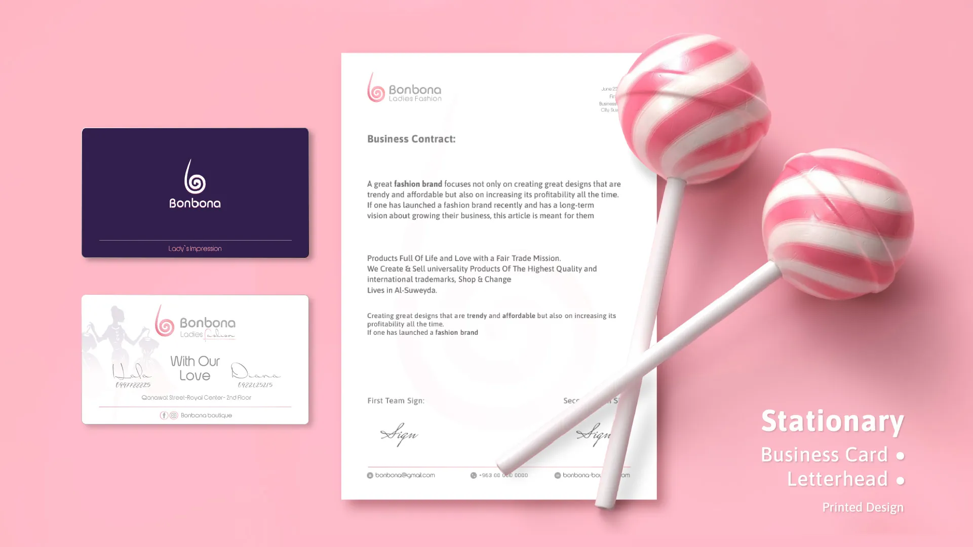 تطوير الهوية البصرية لبراند Bonbona المتخصص في أزياء السيدات. يجمع التصميم بين نعومة "الحلوى" وفخامة الأزياء الراقية، من خلال شعار مبتكر يدمج حرف (b) بالشكل الحلزوني الانسيابي. نطاق العمل: الهوية البصرية: تصميم الشعار، لوحة الألوان (الأرجواني والوردي)، والخطوط العصرية. التغليف (Packaging): تصميم أكياس التسوق وتاغات الملابس (Tags) بروح العلامة التجارية. المطبوعات: القرطاسية الرسمية وبطاقات العمل. التواجد الرقمي: تنسيق صفحات التواصل الاجتماعي (Facebook & Instagram) لضمان تجربة مستخدم موحدة. Bonbona – Modern Feminine Branding Project Overview: A complete visual identity for Bonbona Ladies Fashion. The concept blends the sweetness of "Candy" with high-end fashion, featuring a minimalist logo that transforms the letter (b) into a fluid, spiral shape. Scope of Work: Visual Identity: Logo design, color palette (Purple & Pink), and modern typography. Packaging: Branded shopping bags and hanging tags designed for a premium feel. Stationery: Official business cards and letterhead design. Digital Presence: Social media identity and layout for Facebook & Instagram to ensure brand consistency.